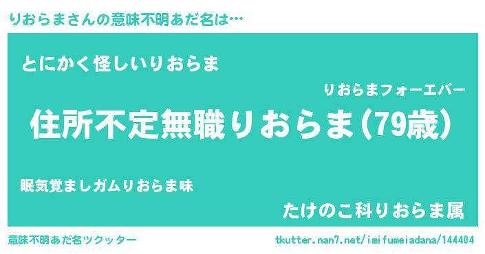 | 女子向けラノベタイトル風あだ名 | 『乙女ゲームの破滅フラグしかない悪役りおらまに転生してしまった…』 |