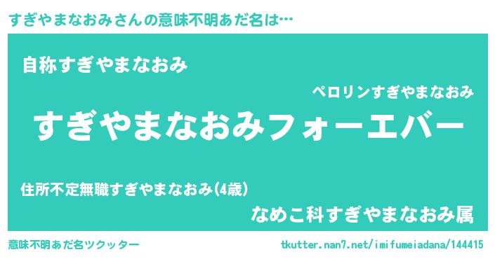 | 男性向けラノベタイトル風あだ名 | 『やはりすぎやまなおみの青春ラブコメはまちがっている 』 |