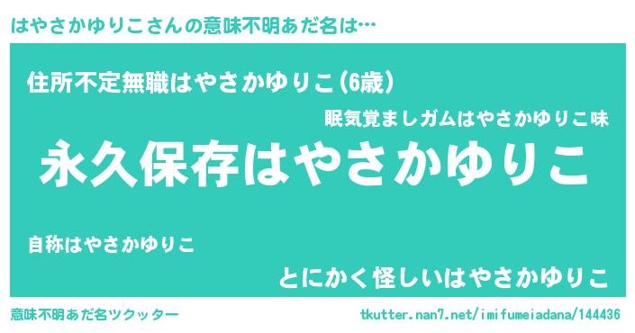 | 伝説のあだ名 | 『古文書に記された勇者はやさかゆりこ』 |