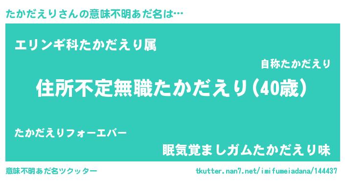 | 欧米人風あだ名 | 『アンジェラ・たかだえり』 |