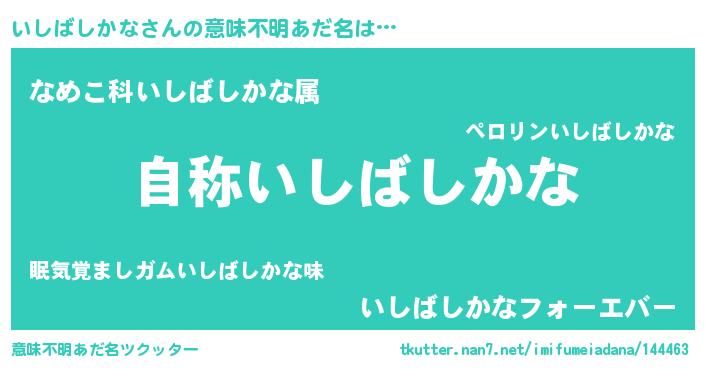 | 男性向けラノベタイトル風あだ名 | 『Re:いしばしかなから始める異世界生活』 |