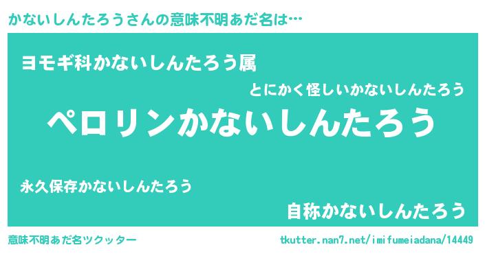 | 胡散臭い通販商品みたいなあだ名 | 『億万長者になれるブレスレット…その名も「かないしんたろう」』 |