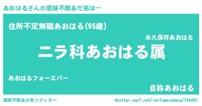 | ヘコむあだ名 | 『あおはる(小並感)』『なまこ酢』 |