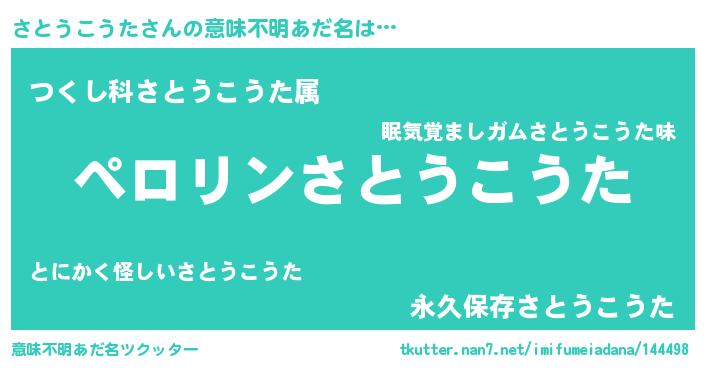 | ヒーロー風カッコイイあだ名 | 『スーパーサトウコウタ』『魔戒騎士サト』 |