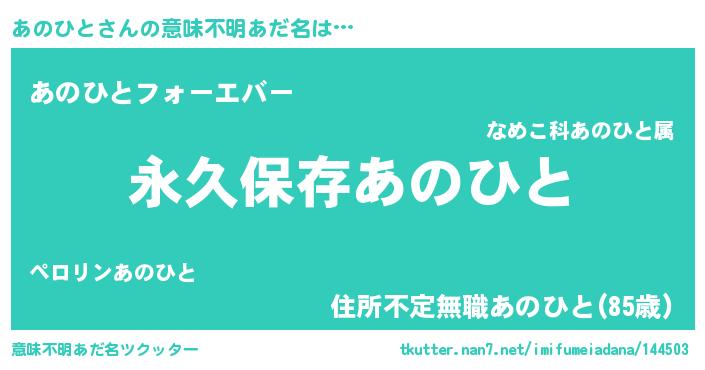 | 胡散臭い通販商品みたいなあだ名 | 『来世でも幸せになれる健康食品…その名も「あのひと」』 |
