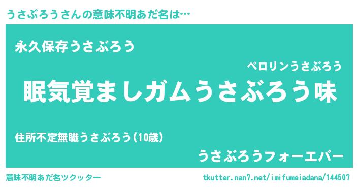 | 男性向けラノベタイトル風あだ名 | 『うさぶろうに滅ぼされるだけの簡単なお仕事です』 |