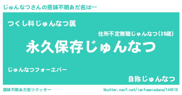 | 胡散臭い通販商品みたいなあだ名 | 『絶対に幸福をもたらす健康食品…その名も「じゅんなつ」』 |