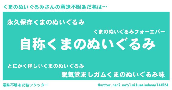 | 男性向けラノベタイトル風あだ名 | 『魔法科高校のくまのぬいぐるみ』 |