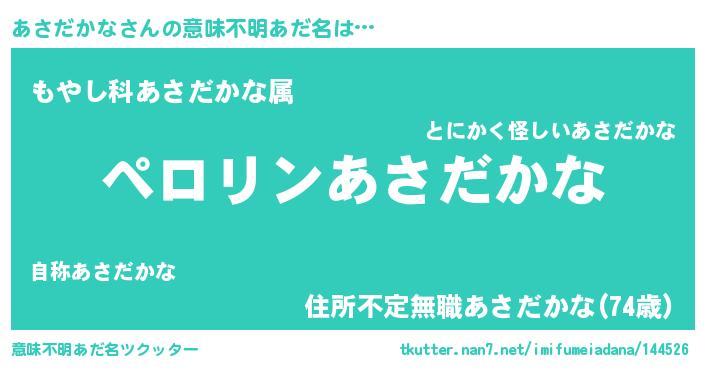 胡散臭い通販商品みたいなあだ名 | 『必ず成功するブレスレット…その名も「あさだかな」』 |