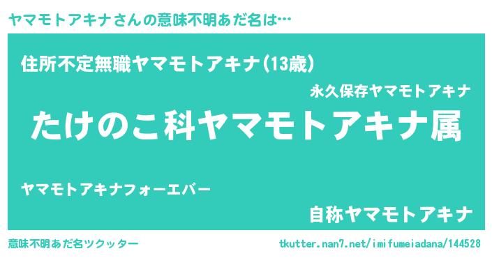 | 男性向けラノベタイトル風あだ名 | 『転生したらヤマモトアキナだった件』 |