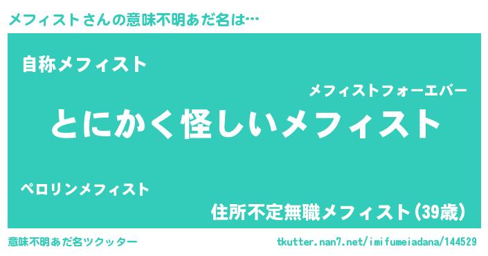 | 恥ずかしいあだ名 | 『メフリンリン』『メフィストデラックス』 |