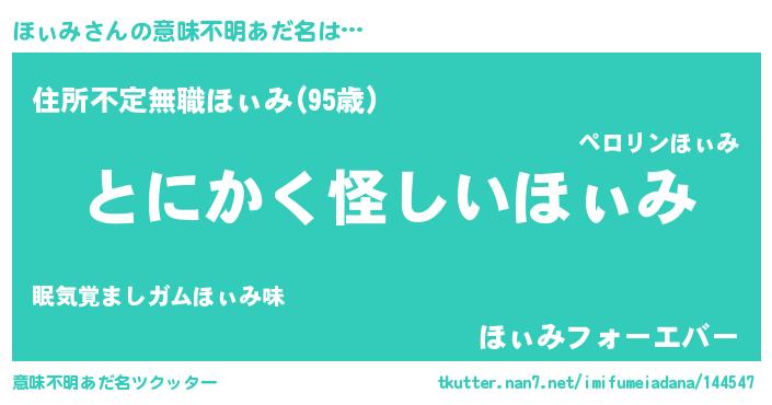 | 欧米人風あだ名 | 『ほぃみ・ステッグマイヤー』 |