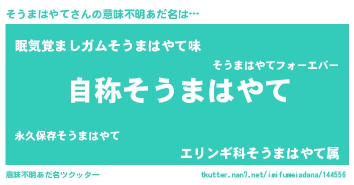 | 男性向けラノベタイトル風あだ名 | 『魔法科高校のそうまはやて』 |