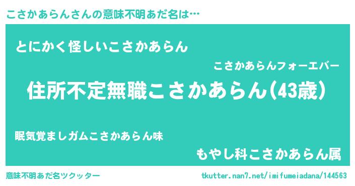 | 胡散臭い通販商品みたいなあだ名 | 『あなたにだけ特別に提供する限定10本のレアな日本酒…その名も「こさかあらん」』 |