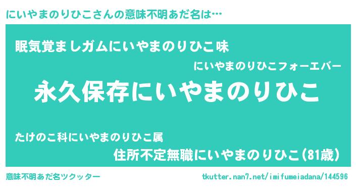 | 女子向けラノベタイトル風あだ名 | 『異世界で失敗しない100のにいやまのりひこ』 |