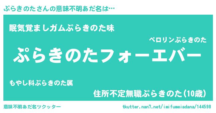 | ファンタジー風あだ名 | 『エターナルプラキノター』『プラフェル』 |