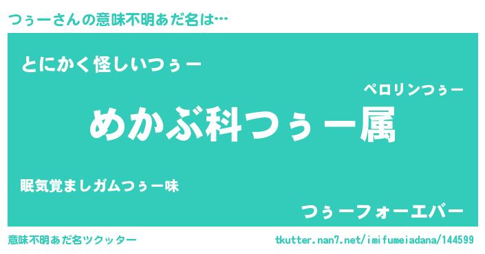 | 男性向けラノベタイトル風あだ名 | 『ツゥースレイヤー』『つぅーの憂鬱』 |