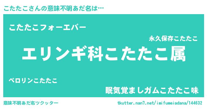 | ヒーロー風カッコイイあだ名 | 『ウルトラこたたこマン』『ネオコタタコ』 |