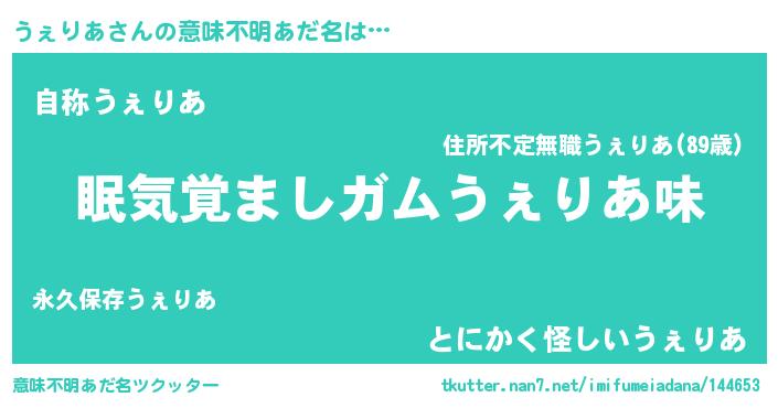 | ヒーロー風カッコイイあだ名 | 『正義の使者うぇりあ』『暗黒騎士ウェ』 |