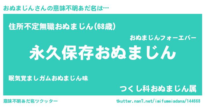 | 胡散臭い通販商品みたいなあだ名 | 『来世でも幸せになれる水素水…その名も「おぬまじん」』 |