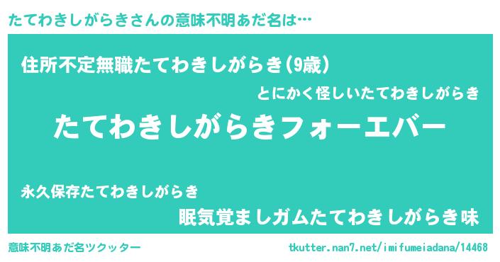| ファンタジー風あだ名 | 『エターナルタテワキシガラキー』 |