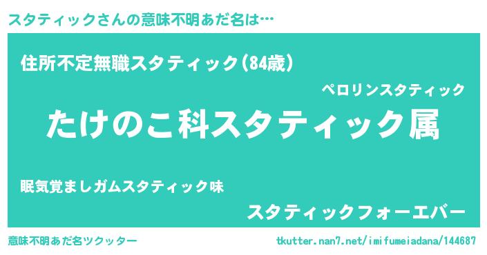 | 男性向けラノベタイトル風あだ名 | 『転生したらスタティックだった件』 |