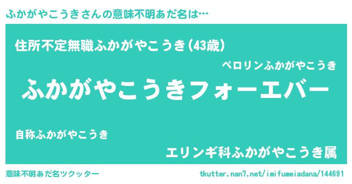 | ファンタジー風あだ名 | 『エターナルフカガヤコウキー』 |