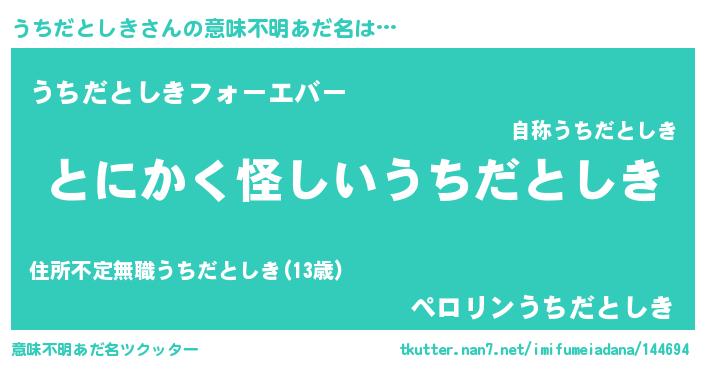 | ポケモン風あだ名 | 『ヒウチダトシキ』『ウチダダネ』 |