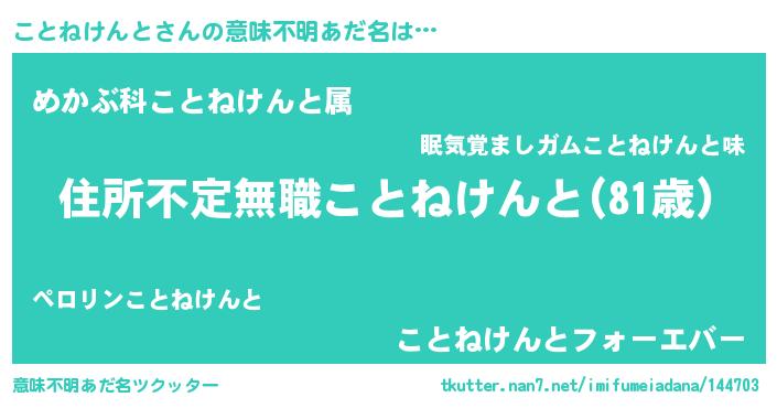 | 男性向けラノベタイトル風あだ名 | 『この素晴らしい世界にことねけんとを!』 |
