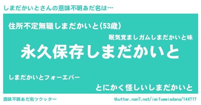 | 胡散臭い通販商品みたいなあだ名 | 『来世でも幸せになれる健康食品…その名も「しまだかいと」』 |