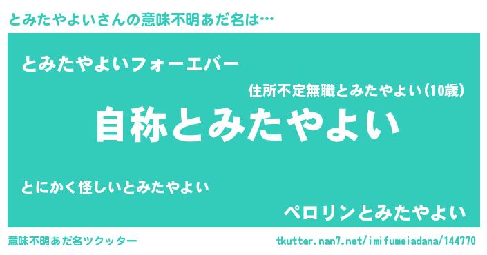 | 男性向けラノベタイトル風あだ名 | 『Re:とみたやよいから始める異世界生活』 |