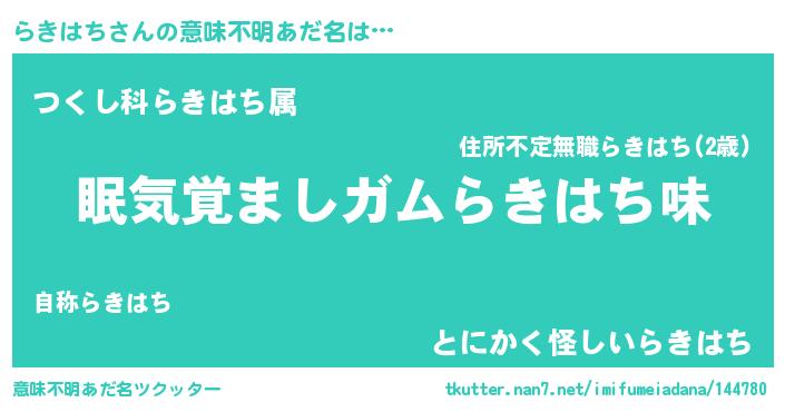 | 欧米人風あだ名 | 『ダニエルらきはち』『ウサインらきはち』 |