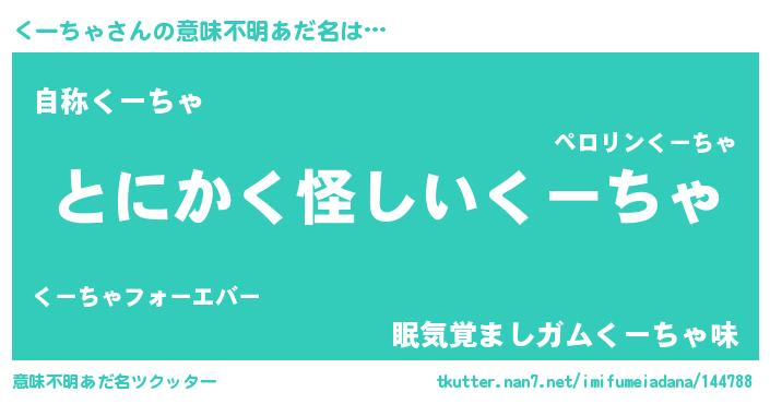 | 男性向けラノベタイトル風あだ名 | 『ダンジョンにくーちゃを求めるのは間違っているだろうか』 |