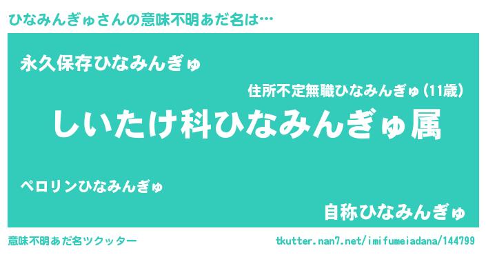 | 胡散臭い通販商品みたいなあだ名 | 『絶対に幸福をもたらす健康食品…その名も「ひなみんぎゅ」』 |