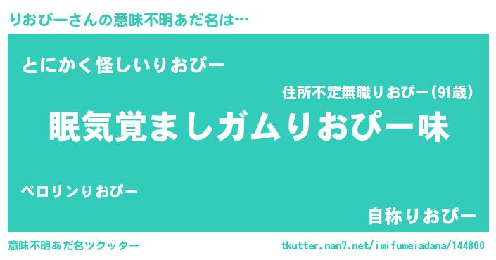 | ヒーロー風カッコイイあだ名 | 『天空の使者りおぴー』『魔戒騎士リオ』 |