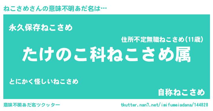 | 料理風あだ名 | 『ねこさめごはん』 |