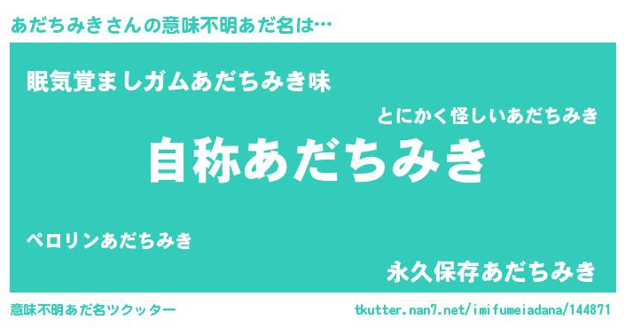 | 男性向けラノベタイトル風あだ名 | 『Re:あだちみきから始める異世界生活』 |