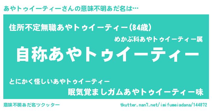 | 胡散臭い通販商品みたいなあだ名 | 『ガンによく効くアガリクス…その名も「あやトゥイーティー」』 |