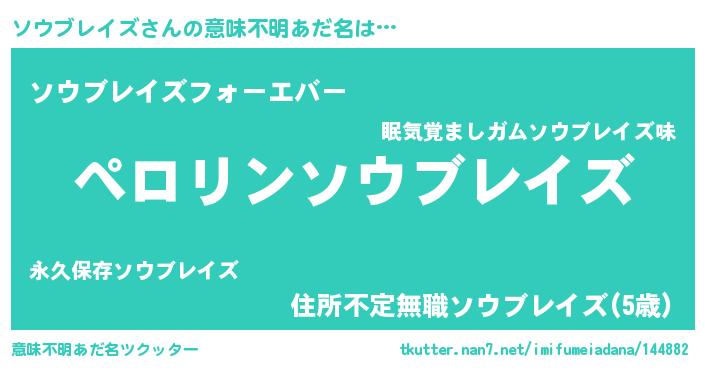 | 男性向けラノベタイトル風あだ名 | 『ソウブレイズの憂鬱』 |
