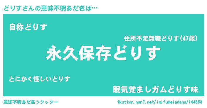 | 男性向けラノベタイトル風あだ名 | 『どりすという概念が存在しない退屈な世界 』 |