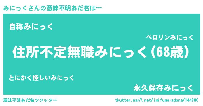 女子向けラノベタイトル風あだ名 | 『みにっくが死なない童話 林檎のみにっくの診療簿』 |