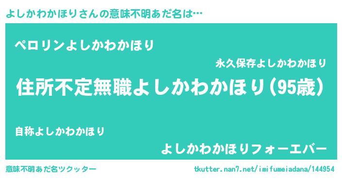 | 男性向けラノベタイトル風あだ名 | 『この素晴らしい世界によしかわかほりを!』 |