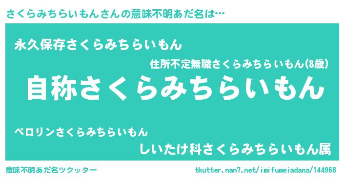| ヘコむあだ名 | 『さくらみちらいもん(笑)』『さくふぇ~』 |