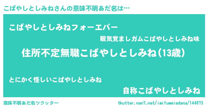 | 欧米人風あだ名 | 『こばやしとしみね・ステッグマイヤー』 |
