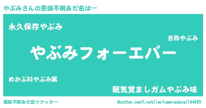 | ファンタジー風あだ名 | 『エターナルヤブミー』『ヤブディッシュ』 |