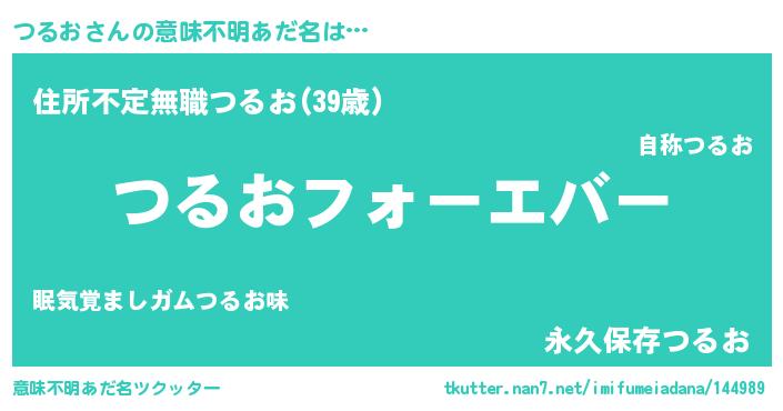 | ヘコむあだ名 | 『なまこ酢』『つるお(笑)』『つるを』 |