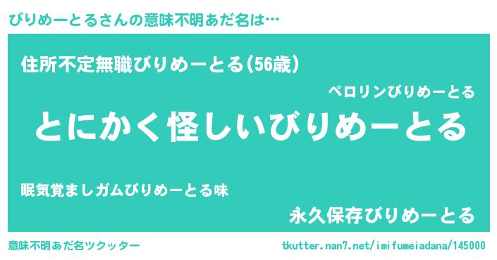 | 伝説のあだ名 | 『解き放たれた遊び人びりめーとる』 |