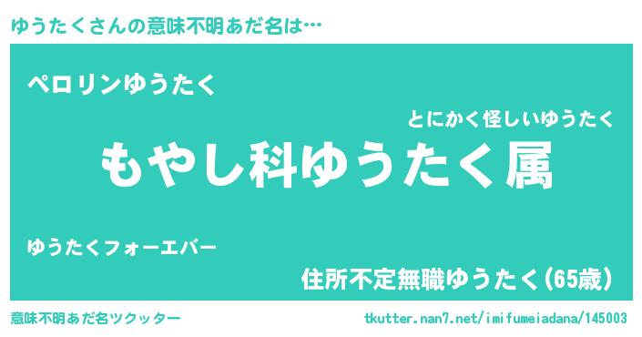 | 胡散臭い通販商品みたいなあだ名 | 『モテモテ間違いなし霊験あらたかなお札…その名も「ゆうたく」』 |