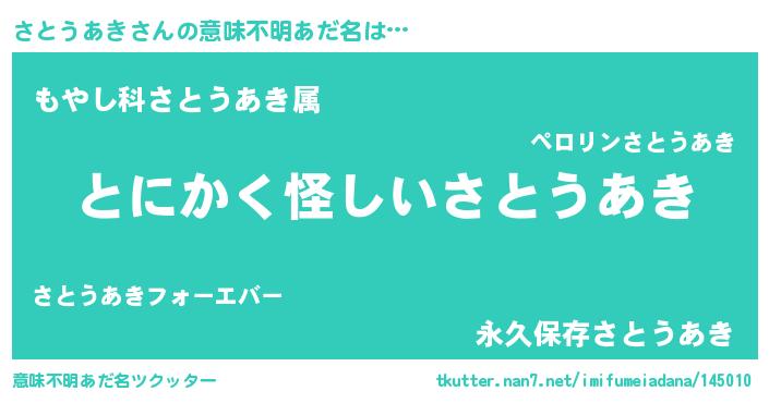 | 男性向けラノベタイトル風あだ名 | 『ダンジョンにさとうあきを求めるのは間違っているだろうか』 |