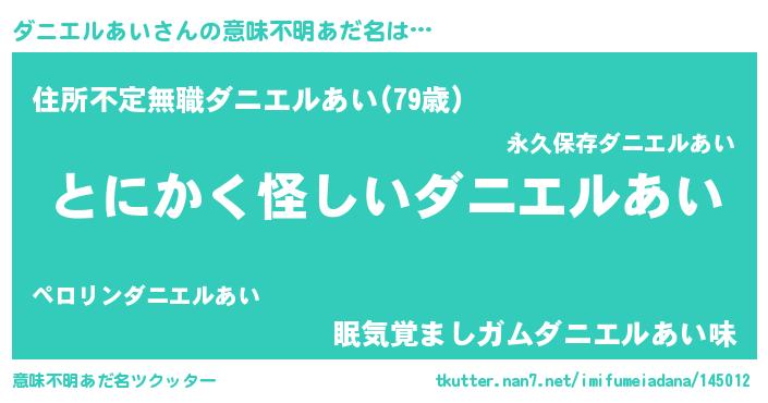 | ヘコむあだ名 | 『ダニぷりん』『ダニエルあい(苦笑)』 |